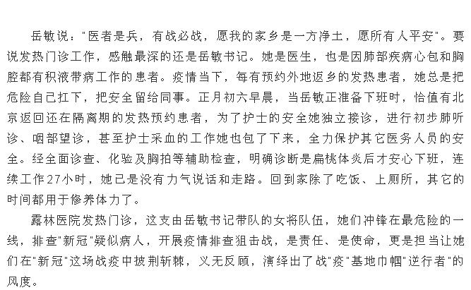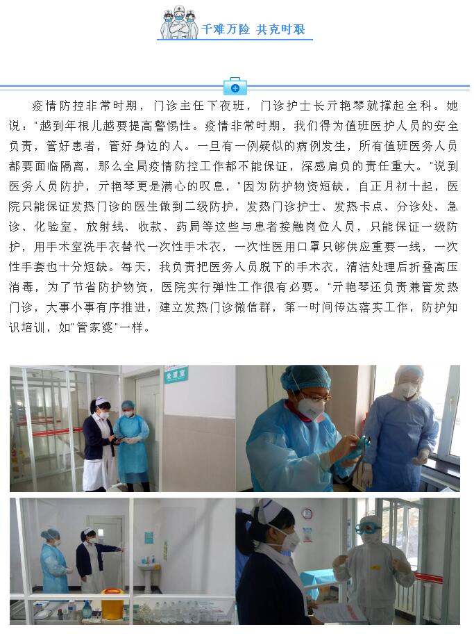2003年非典后,露林醫(yī)院正式籌建了發(fā)熱門(mén)診。此次新冠疫情,發(fā)熱門(mén)診才算真正被推上了沒(méi)有硝煙戰(zhàn)場(chǎng)的舞臺(tái),是疫情防控最為關(guān)鍵也是最危險(xiǎn)的崗位。