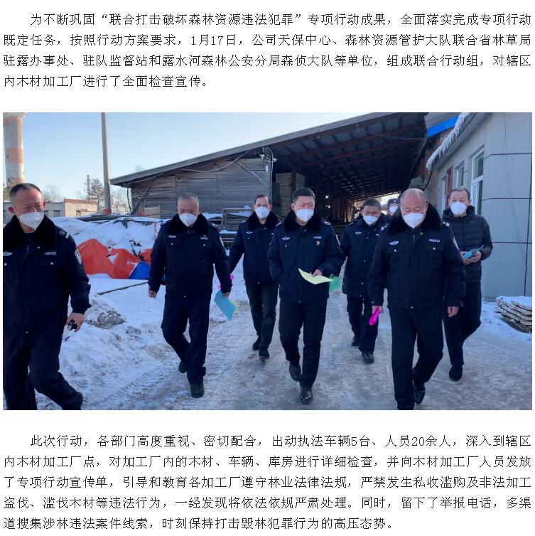 當(dāng)前位置:經(jīng)營(yíng)管理 >> 聯(lián)合打擊破壞森林資源違法犯罪專項(xiàng)行動(dòng) >> 正文